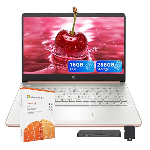 HP Premium Stream 14″ HD BrightView Laptop, Intel Celeron N4120, 16GB RAM, 288GB Storage(128GB eMMC+160GB Docking Station Set), Intel UHD Graphics, 1 Year Office 365, Fast Charge, Win 11 S, Gold