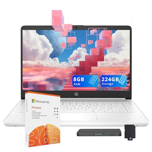 HP Premium Stream 14″ HD BrightView Laptop, Intel Celeron N4120, 8GB RAM, 224GB Storage(64GB eMMC+160GB Docking Station Set), Intel UHD Graphics, 1 Year Office 365, Fast Charge, Win 11 S, White