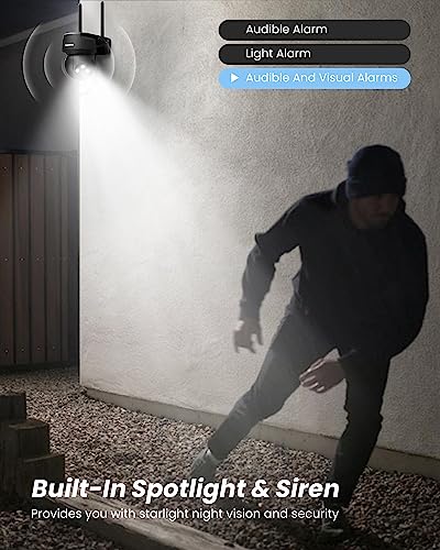 【Super color night vision】The camera surveillance exterieur has two color night vision configurations. When you turn on the “color image function” of night vision mode, you can get color images and videos all day. When you only turn on “audible and visual alarm” in the alarm setting, the security camera outdoor will only capture color night vision images when the alarm is issued. Therefore, the camera can capture more details at night.
