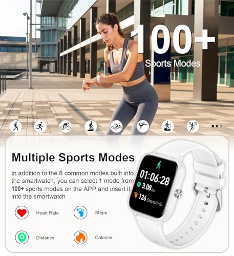 【100+ Sports Modes Activity Tracker】 Featuring innovative activity trackers and smartwatches. The smartwatch for women can monitor and record exercise calories, distance, steps, time, and heart rate. The fitness tracker watch supports 100+ sports modes: running, climbing, jump rope, yoga, cycling, football, basketball, etc. (In addition to the built-in 8 commonly used modes, you can select through the APP) IP68 waterproof smart watch, lets you sweat without worry.NOTE: not suitable for diving, sauna, seawater, or hot water.