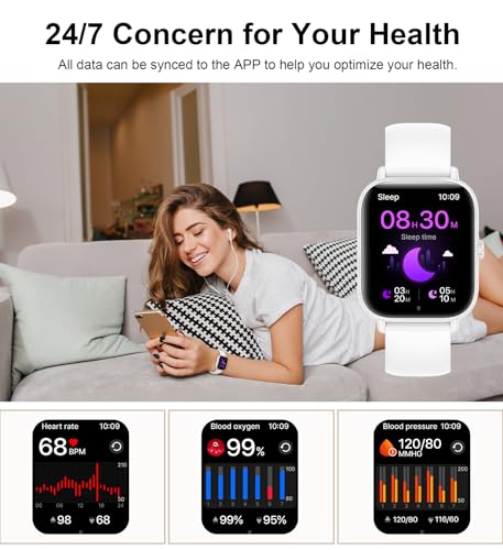 Smart Watch for Women with Bluetooth Call/Read Messages, 1.83″ Activity Trackers with 100+ Sports Modes, Step Counter, Heart Rate Monitor, Sleep Tracker, Smartwatch Compatible Android iOS, White