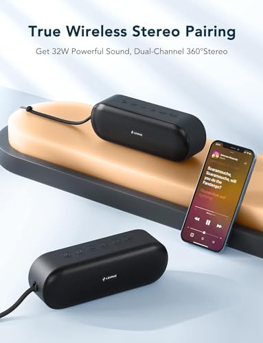 (Upgraded) LENRUE Portable Bluetooth Speaker, IPX7 Waterproof Wireless Speaker with 16W Stereo Sound, Rich Bass, 20H Playtime, Built-in Mic, Outdoor Speaker for Party Pool Camping