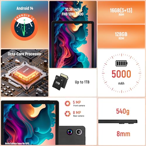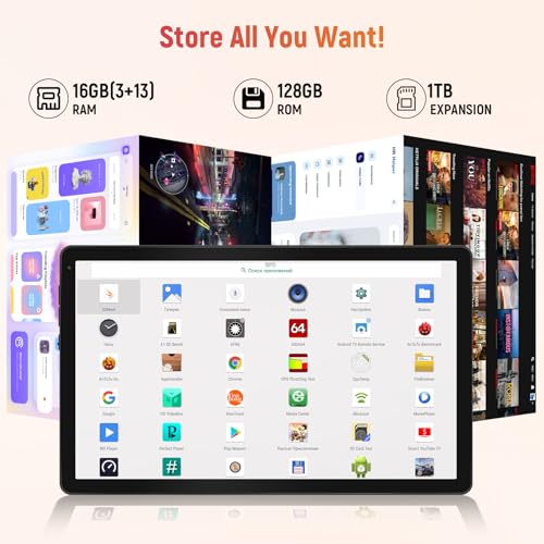 Tablet, 10 inch Android 14 Tablet with Octa-core Processor 16GB RAM 128GB ROM 1TB Expansion, HD IPS Touchscreen, WiFi 6, BT 5.3, Dual Camera, Tablets 2025